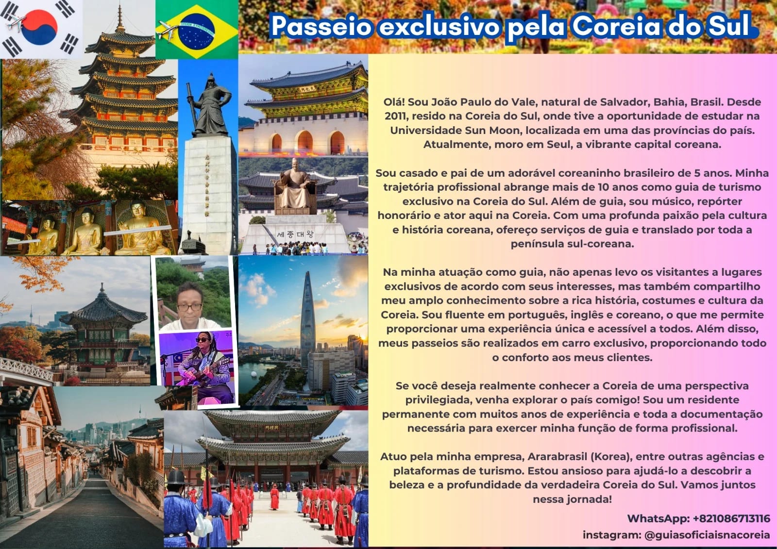 Para uma experiência autêntica e completa pela Coreia do Sul, conte com o auxílio do João Paulo para tornar a sua viagem ainda mais especial e segura!